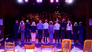Theaterzanggroep Schudden voor Gebruik doet niet alleen aan eigen avondvullende programma's en grotere projecten, maar is ook te boeken als aanvulling op een evenement! Denk bijvoorbeeld aan een verjaardagsfeest, jubileum, pensionering, symposium of zelfs een buurtbarbecue. In overleg maken we een voorstelling op maat, waarbij we bij onze liedkeuze rekening houden met onder andere hobby's of het thema van de bijeenkomst. Bij de meeste besloten optredens verzorgen we een set van ongeveer 20 minuten. Neem vooral contact met ons op via de boekingspagina.