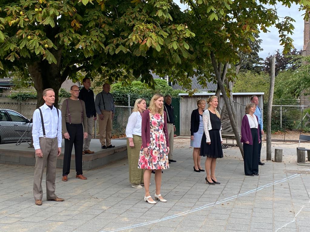 Het derde grote project van 2017-2018 is achter de rug. Deelname aan Arnhem de Opera is voor Schudden voor Gebruik een nieuwe ervaring. Uit de comfort zone van dichtbij elkaar zingen, een muziekstuk met tempowisselingen, ingewikkelde inzetten, maar…. Al doende leert men. Een maand geleden (de eerste repetitie) was alles nog een beetje onzeker, ongelijk, niet zuiver… Maar zie, een maand later hebben Novo Cantara, het muzikale ensemble en de acteurs ons geholpen (en wij hun) in het muzikale en theatrale proces en is de Opera een monument geworden. Na Arnhem CS en de eerste Gruwelijke Rijmen heeft Schudden met deze Opera (dank Albert Hoex) een prachtig slot gemaakt aan dit seizoen. Op de website www.arnhemopera.nl staan een heleboel foto’s (Mirthe Dokter).